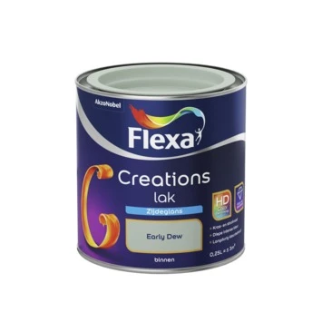 Geef je interieur een nieuwe impuls met Flexa Creations. Flexa Creations binnenlak early dew is een watergedragen lak voor binnen, heeft een zijdeglans en dekt optimaal. De lak heeft een harde toplaag en is daardoor zeer kras- en stootvast. De HD color technology zorgt voor diepe intense kleuren. De unieke formulering vermindert vervaging van kleurpigmenten door UV-licht. Je kunt zo extra lang genieten van jouw Flexa Creations kleurkeuze. Naast de standaard beschikbare kleuren is deze verf verschillende kleuren te verkrijgen bij de verfmengbalie in de GAMMA bouwmarkt. Flexa Creations: een prachtige manier om jouw wereld te personaliseren met kleur! De inhoudsmaat is 250 ml.