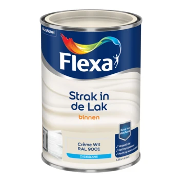 Voor het beste resultaat van de Flexa Strak in de lak voor binnen ral 9001 crèmewit zijdeglans 1,25 liter behandel je de ondergrond eerst met de Flexa binnenlak grondverf. Het blik heeft een inhoud van 1,25 liter, dit is voldoende voor een oppervlakte van ongeveer 16 m². Reeds een uur na het aanbrengen van de verf is deze reeds stofdroog, na 4 uur kan je de volgende laag aanbrengen. Verwerk de verf bij temperaturen tussen de 10 en 30°C.