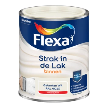 Voor het beste resultaat van de Flexa Strak in de lak voor binnen ral 9010 gebroken wit hoogglans 750 ml behandel je de ondergrond eerst met de Flexa binnenlak grondverf. Het blik heeft een inhoud van 750 milliliter, dit is voldoende voor een oppervlakte van ongeveer 9 m². Reeds een uur na het aanbrengen van de verf is deze reeds stofdroog, na 16 uur kan je de volgende laag aanbrengen. Verwerk de verf bij temperaturen tussen de 10 en 30°C.