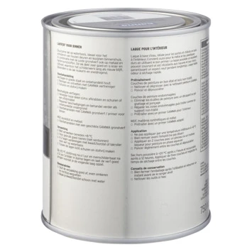 Voor een optimaal resultaat van de GAMMA binnenlak behandel je de ondergrond eerst met de GAMMA grondverf voor binnen. Het blik heeft een inhoud van 750 milliliter, dit is voldoende voor een oppervlakte van ongeveer 9 m². Een uur na het aanbrengen van de verf is deze reeds stofdroog, na 20 uur kan je de volgende laag aanbrengen. Verwerk de verf bij temperaturen tussen de 8 en 25°C.