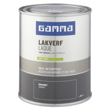 Deze GAMMA binnenlak mat 750 ml graniet is een verf op waterbasis. Verf op waterbasis is de beste keus voor binnenshuis. Het is geurarm en blijft langer mooi van kleur. Deze kras- en stootvaste verf is geschikt voor hout, en in combinatie met de daarvoor geschikte grondverf, ook op metaal en kunststoffen. Voor een optimaal resultaat van de GAMMA binnenlak behandel je de ondergrond eerst met de GAMMA grondverf voor binnen. Het blik heeft een inhoud van 750 milliliter, dit is voldoende voor een oppervlakte van ongeveer 9 m². Drie uur na het aanbrengen van de verf is deze reeds stofdroog, na 24 uur kan je de volgende laag aanbrengen. Verwerk de verf bij temperaturen tussen de 8 en 25°C. De lak is te gebruiken als afwerking van nieuw onbehandelde delen, maar ook op bestaand schilderwerk of om meubels een nieuwe uitstraling te geven. De binnenlak is eenvoudig aan te brengen met een kwast of lakroller voor verf op waterbasis. Deze koop je bij de dichtstbijzijnde GAMMA of via de webshop. Wij hebben de 20 kleuren voor jou klaar staan in hoogglans, zijdeglans en mat. Zowel in muur- als lakverf. Mocht de kleur die je zoekt er niet bij staan is het altijd mogelijk om bij onze verfadviseur speciaal jou kleur te laten mengen. Zo creëer je altijd de woonsfeer die bij jou past, romantisch, industrieel, sereen of heel kleurrijk, alles is mogelijk. Kortom deze lak is een prima keuze om het jouw interieur een nieuwe uitstraling te geven.