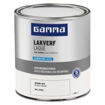 Voor een optimaal resultaat van de GAMMA buitenlak zijdeglans 750 ml crèmewit RAL 9001 behandel je de ondergrond eerst met de GAMMA buitenlak grondverf, je schilderwerk is dan tot wel 5 jaar beschermd. Het blik heeft een inhoud van 750 ml, dit is voldoende voor een oppervlakte van ongeveer 12 m². Drie uur na het aanbrengen van de verf is deze reeds stofdroog, na 20 uur kan je de volgende laag aanbrengen. Verwerk de verf bij temperaturen tussen de 8 en 25°C.