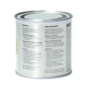 De GAMMA radiatorlak hoogglans 250ml gebroken wit is een glanzende, water verdunbare lak voor binnen. Het is speciaal geschikt voor de bescherming van radiatoren, centrale verwarmingsleidingen en warmwaterleidingen. Gamma radiatorlak is watergedragen en bestand tegen temperaturen tot ca. 80°C. De lak is geurarm en snel droog waardoor je de radiatorlak probleemloos binnenshuis kunt gebruiken.