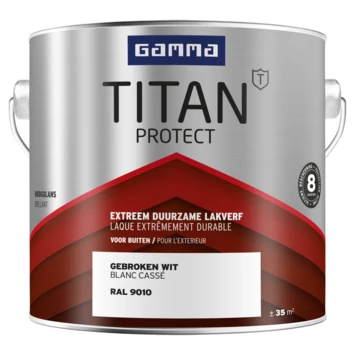 Voor een optimaal resultaat van de GAMMA Titan buitenlak hoogglans 2,5 L gebroken wit behandel je de ondergrond eerst met de GAMMA Titan Protect grondverf. De kleur en hoogglans blijft zo extra lang behouden. Je schilderwerk is dan tot wel 8 jaar beschermd. Het blik heeft een inhoud van 2,5 liter, dit is voldoende voor een oppervlakte van ongeveer 25 m². Drie uur na het aanbrengen van de verf is deze reeds stofdroog, na 20 uur kan je de volgende laag aanbrengen. Verwerk de verf bij temperaturen tussen de 8 en 25°C.