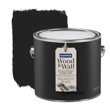 GAMMA Wood&Wall Klassiek Extra Mat in de kleur balanced black 2,5 liter is een zeer matte krijtverf met een verfijnde uitstraling en een geheel eigen effect. Het poedermatte effect komt tot in de kleinste detail tot zijn recht. GAMMA Wood&Wall geeft je huis de cottagesfeer van de Engelse countryside.