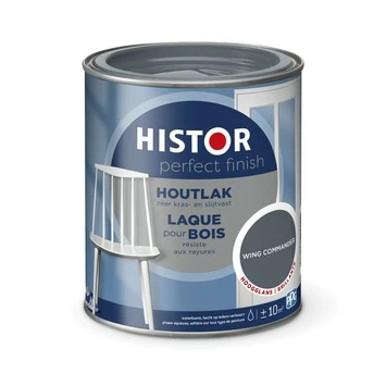 Histor Perfect Finish houtlak wing commander hoogglans 750 ml is geschikt voor het aflakken van hout, metaal en kunststof. De lak is zeer kras- en slijtvast en extra dekkend. De lak is op waterbasis en kan gebruikt worden over elke vorige verfsoort heen, dus ook over terpentineverf. De verf is makkelijk aan te brengen en is sneldrogend. Na 1 uur is de verf stofdroog en na 5 uur overschilderbaar. Verf op terpentinebasis in lichte kleuren kan bij weinig daglicht vergelen. Histor Perfect Finish is een watergedragen houtlak en vergeelt daarom niet en behoudt zijn kleur. Daarnaast is de verf geurarm. Naast de kant-en-klare kleuren is deze verf in iedere gewenste kleur te mengen bij de verfmengbalie in de GAMMA bouwmarkt. Een blik van 750 ml is voldoende voor ongeveer 10m2.
