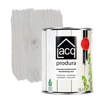 Lacq Produra buitenbeits transparant white mat 1 liter is een professionele matte beits voor al je houten ondergronden. Het is een duurzaam en hoogwaardig beschermingsmiddel. Produra is watergedragen en opgebouwd uit plantaardige componenten. Dankzij de unieke samenstelling, bouwt Produra van binnen uit een laagdikte op tot een transparante matte laag op het hout. Deze laag blijft lang flexibel en is ademend zodat deze zelfs in belastende weersomstandigheden niet bladdert of scheurt. Produra vergeelt niet en blijft dankzij het krachtige UV-filter lang kleur echt. Inhoudsmaat 1 liter.