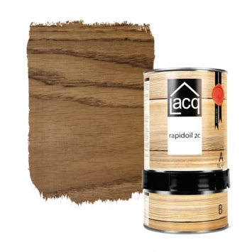 Lacq Rapidoil Brown bestaat uit 2 componenten. Component A is op basis van plantaardige olie en is volledig vrij van oplosmiddel. Met slechts één enkele laag geeft u het hout kleur en de bescherming die het verdiend. Met het toevoegen van de oplosmiddel vrije accelerator (component B) versnelt u de droging van de olie waardoor het behandelde oppervlakte sneller te belasten is.