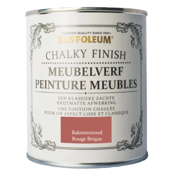Rust-Oleum Meubelverf Baksteen rood 750 ml is perfect om meubels een nieuwe uitstraling te geven. De verf mag rechtstreeks op hout (blank of geverfd), baksteen, tegel, pleister of elk ander voorbehandeld hard oppervlak worden aangebracht. Creëer een vintage look door twee lagen in contrasterende kleuren aan te brengen en deze zacht op te schuren wanneer de verf droog is. Werk voor het ultieme resultaat de Rust-Oleum Meubelverf Baksteen rood 750 ml af met een beschermende laag Rust-Oleum Meubelwas of Rust-Oleum Meubelvernis mat.