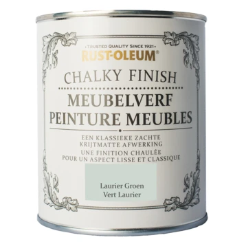 Rust-Oleum Meubelverf Laurier groen 750 ml is perfect om meubels een nieuwe uitstraling te geven. De verf mag rechtstreeks op hout (blank of geverfd), baksteen, tegel, pleister of elk ander voorbehandeld hard oppervlak worden aangebracht. Creëer een vintage look door twee lagen in contrasterende kleuren aan te brengen en deze zacht op te schuren wanneer de verf droog is. Werk voor het ultieme resultaat de Rust-Oleum Meubelverf Laurier groen 750 ml af met een beschermende laag Rust-Oleum Meubelwas of Rust-Oleum Meubelvernis mat.