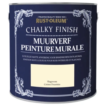 Rust-Oleum Muurverf Chalky finish Slagroom 2,5 liter is perfect om bijvoorbeeld de muren van je woonkamer een nieuwe kleur te geven. De luxueuze gladde en krijtmatte afwerking is op waterbasis en dus geurarm. De verf kan rechtstreeks aangebracht worden op de meest voorkomende ondergronden, zoals pleisterkalk, beton en baksteen – een voorstrijk is dus meestal niet nodig! Chalky Finish is heeft een duurzame afwerking en is goed bestand tegen slijtplekken en vlekken. Combineer de Chalky FInish muurverf Slagroom met een bijpassende Chalkwash kleur voor een complete interieurtransformatie.